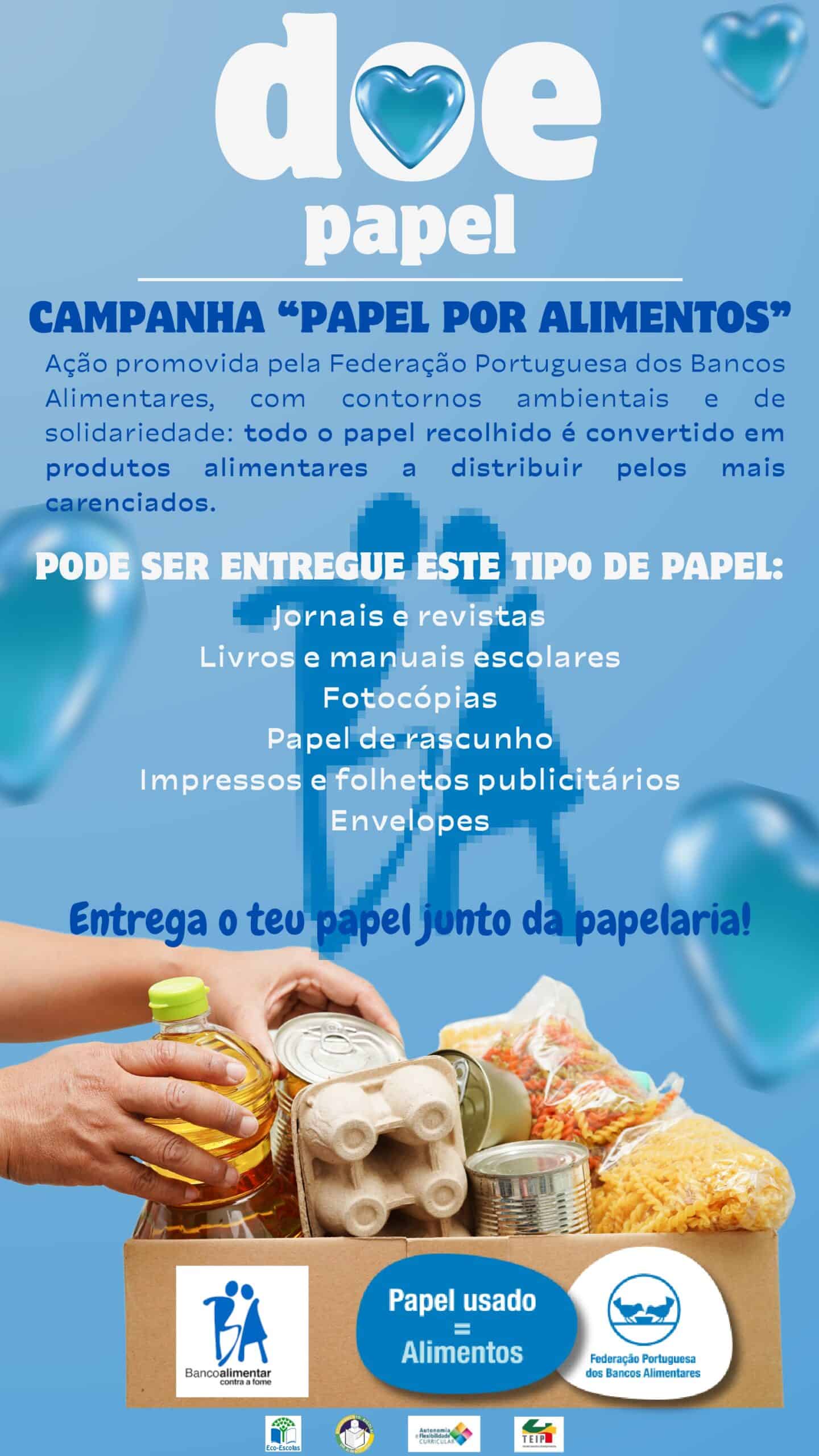 solidariedade. Todo o papel recolhido é convertido em produtos alimentares a distribuir pelos mais carenciados.